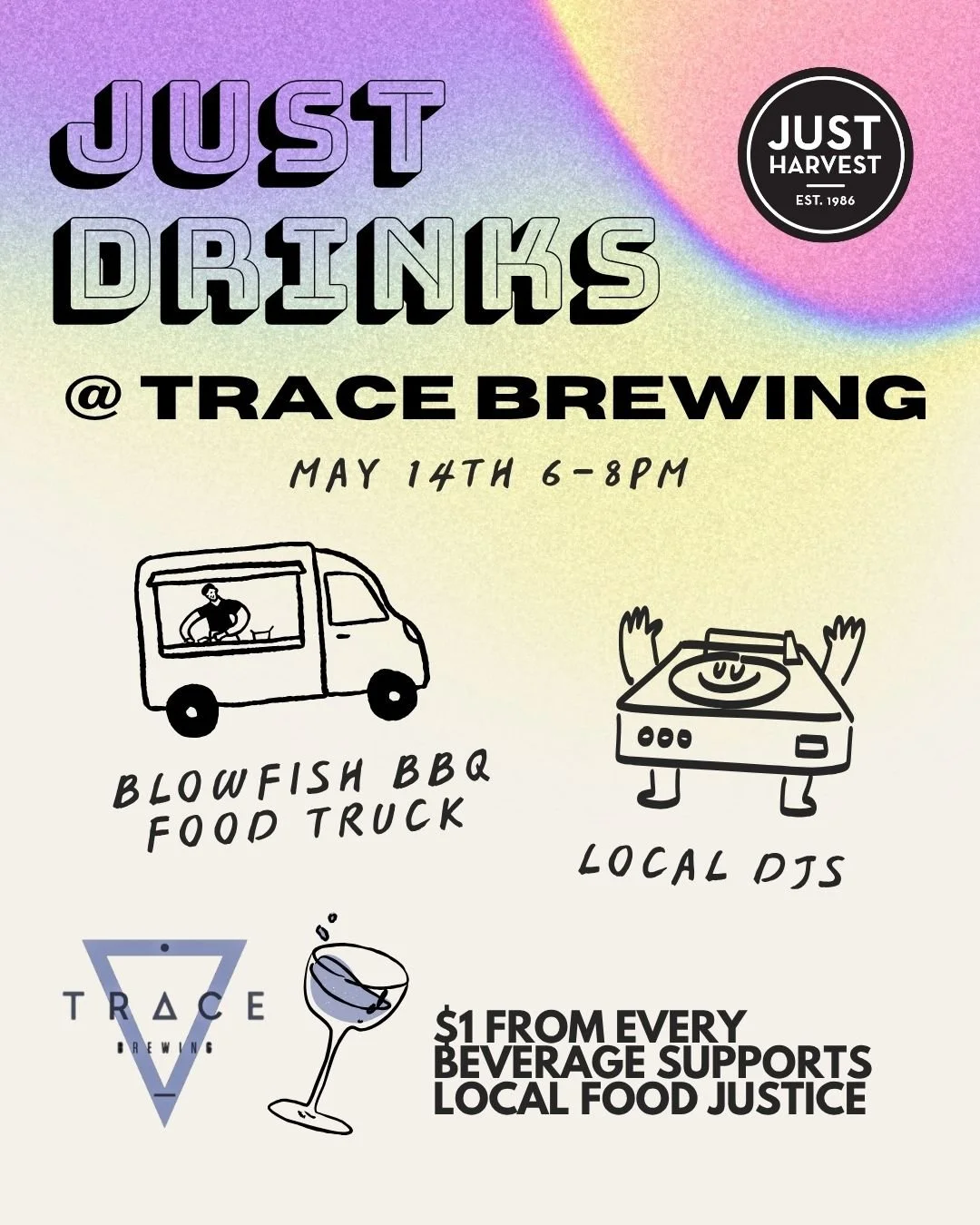 from 6-8 PM at Trace Brewing in Bloomfield for a fun evening where $1 from each drink benefits Just Harvest!